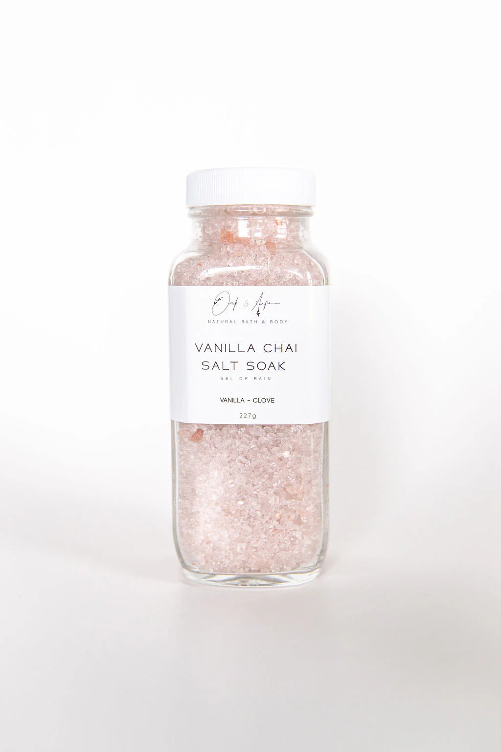 Step into an opulent bath of Himalayan pink salt and soothing Dead Sea salt, combined with the comforting, sweet fragrance of vanilla chai and invigorating clove.