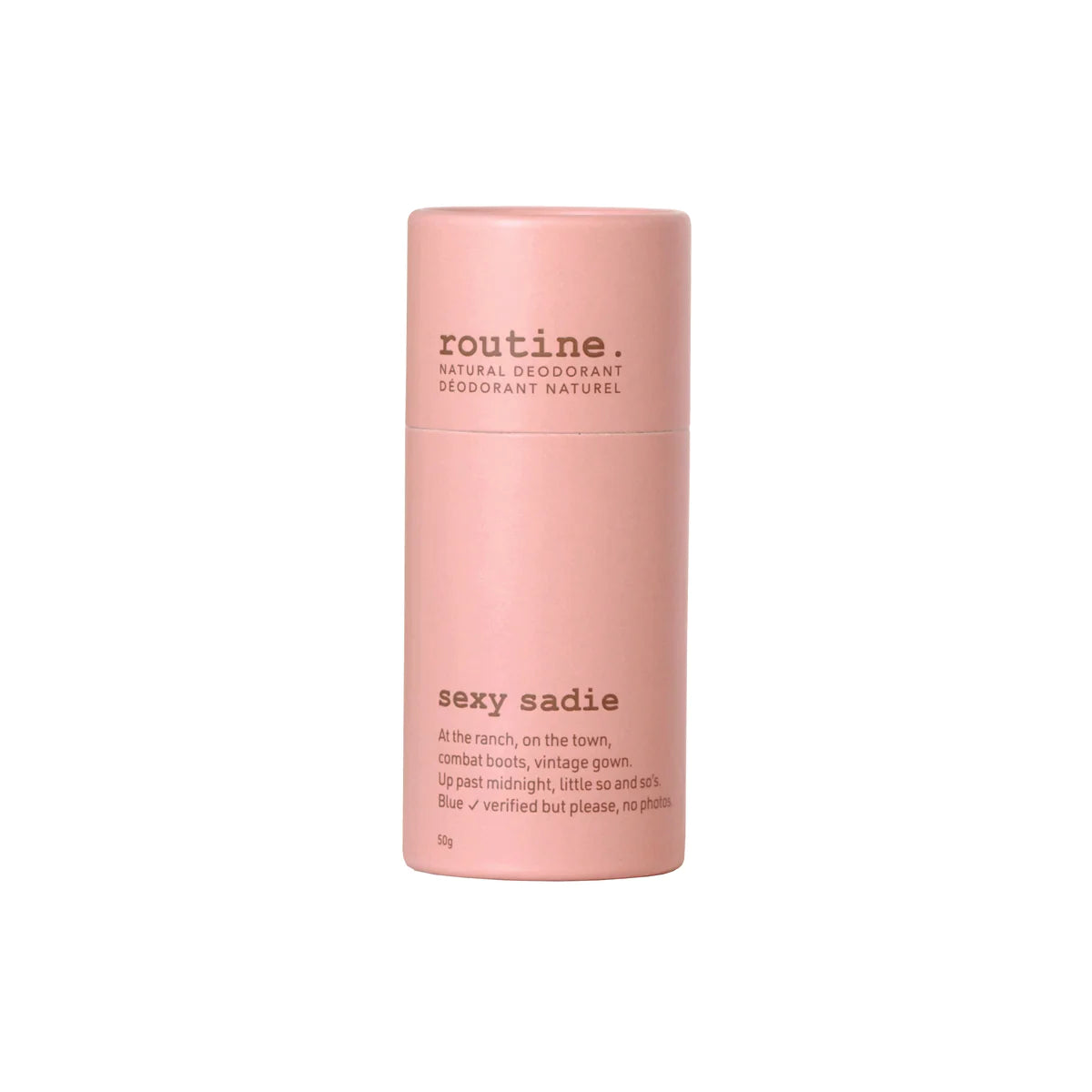 In the Canadian Rockies, every 50g deodorant stick is filled 2 km away from the routine HQ in a cardboard and post-consumer recycled twist-up tube, made of 50% less plastic than a conventional deodorant stick.